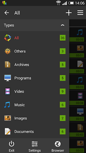 downloading from internet up to three files simultaneously; accelerated download by using multithreading (9 parts) download files in background and resume after pause; interception of links from the browser and clipboard; icon with progress of download in notification panel; transparent progress-bar on top of all windows; easy and quick management of your downloads; fast and smart algorithms for downloading files; completion notification by sound and vibration; backup list of downloads and settings in file; save different file types in different folders; built-in browser for sites with registration; interception of mp4 video from web-page; downloader all video and audio formats; interface customization and themes; planning download at right time; widget on your home screen; create profiles for sites; and many more...