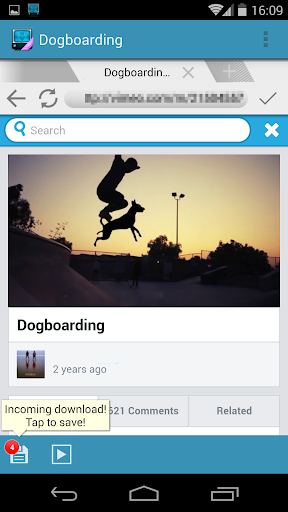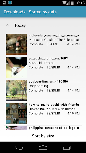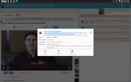In the browser simply click on the video link that you wish to download. From the Action menu, select Video Downloader, and the download should start automatically. You should be able to see the download progress in the notification bar (at the top of the screen).