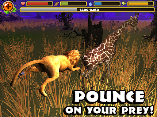 Explore the wild savanna and live life as a Lion! Survive in a massive world filled with dangerous animals and crafty critters. Start your own pride of lions, raise baby lion cubs, stalk prey through grassy plains, and battle for your life against fierce predators like crocodiles, cheetahs, and elephants! You'll need to maintain your health, hunger, thirst, and energy if you're going to survive in the hostile African savanna! se your powerful bite, razor sharp claws, and swift speed to catch tasty snacks and fight dangerous beasts! Find up to three lionesses to bond with and raise your very own family of lions to help you hunt! Gain experience by defeating other animals and level up to increase your health, attack damage, and even unlock new lion furs!