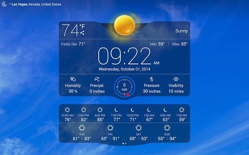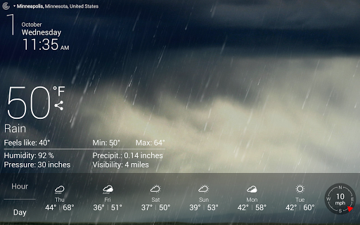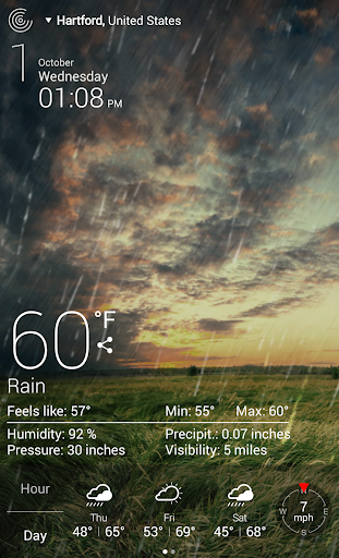 Don't let bad weather take you by surprise! Set the gorgeous animated wallpapers with live weather conditions on your home screen and be aware of any weather that is coming your way. Whether it is cloudy, rainy, snowy or even stormy outside, Weather Live will provide you with current weather conditions and forecast in your city and multiple locations all around the world.