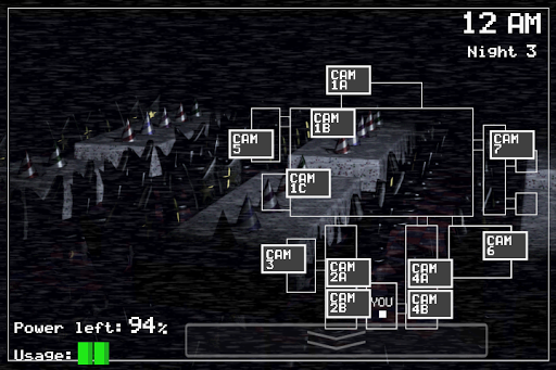 From your small office you must watch the security cameras carefully. You have a very limited amount of electricity that you're allowed to use per night (corporate budget cuts, you know). That means when you run out of power for the night- no more security doors and no more lights! If something isn't right- namely if Freddybear or his friends aren't in their proper places, you must find them on the monitors and protect yourself if needed!