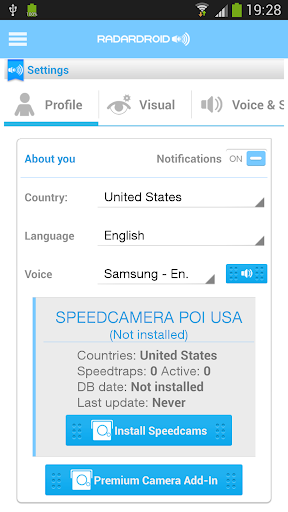 Radardroid will give a visual and audible warning when you approach any fixed or mobile speed camera in the application database. This application will reduce possible speeding tickets thanks to the ever increasing available features. Please, check out our free Radardroid Lite application to get to know our apps. GPS speed camera warning application for Android devices. Radardroid will give a visual and audible warning when you approach any fixed or mobile speed camera in the application database. This application will give you advanced warning of possible danger ahead and will reduce possible speeding tickets thanks to the ever increasing available features. We do not condone speeding and will not be held responsible for anybody prosecuted for breaking the law.
