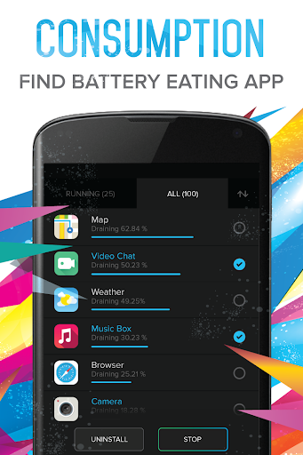 ✓ Choose the app that drains the most and Uninstall/or/Force Stop to save time!