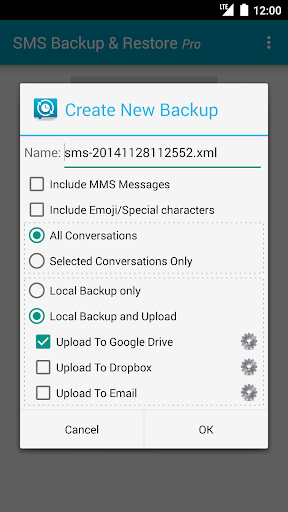 - Backup created locally on the device with options to automatically upload to Email, Google Drive or DropBox using the Add-On app.