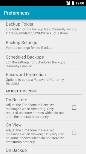 * Prevent Phone from Sleeping: To prevent the phone from going to sleep/suspended state while a Backup or Restore operation is in progress.