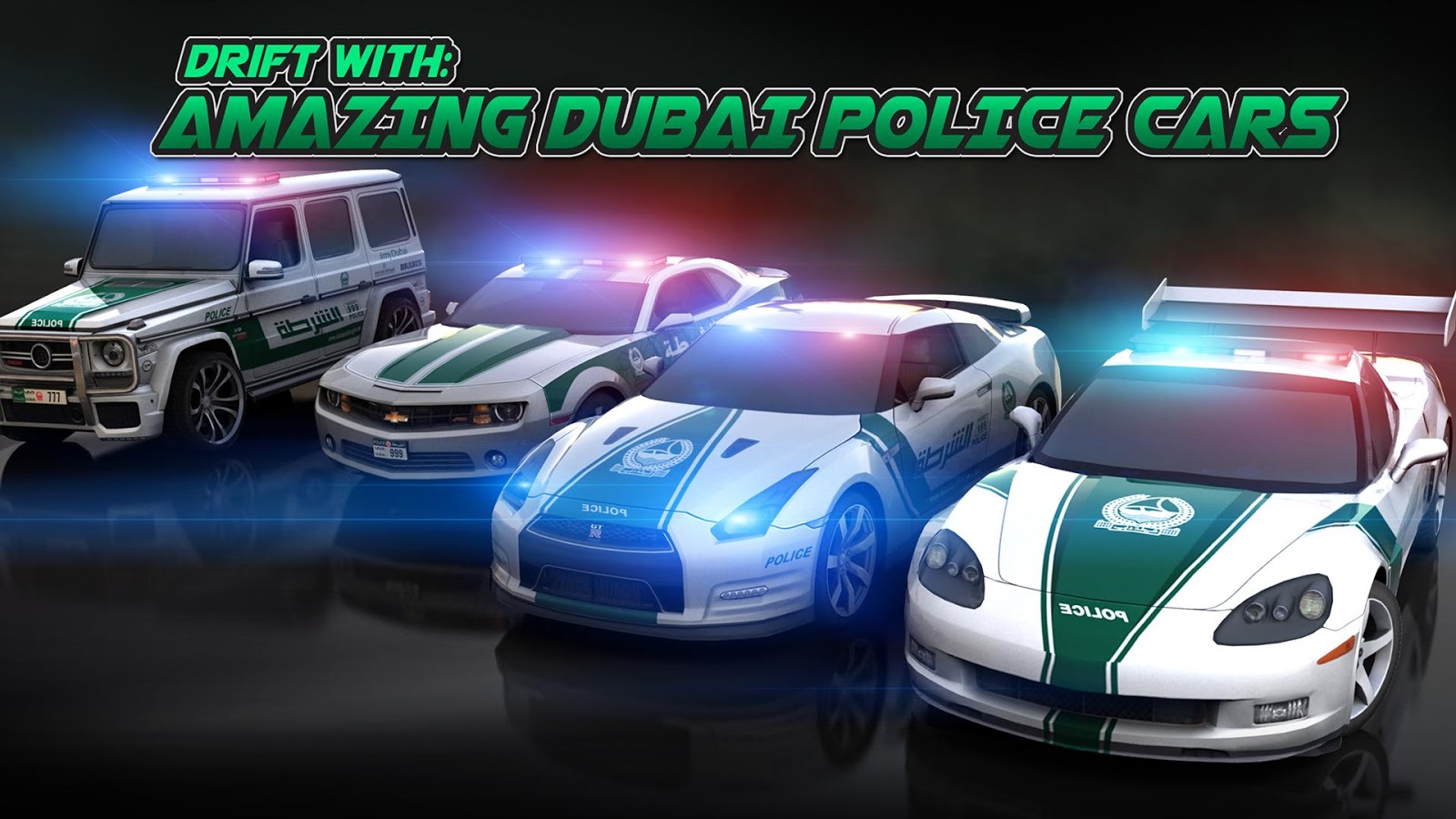 Can you handle the G-Force? Experience the most unique, thrilling, super fast, nerve racking game that takes racing & drifting motor sport to a completely new level. Own your garage, cars, and crew. Be a racer within your team or let them race in your garage's name. For the first time, race in the famous Dubai Police supercars. Choose from an elite collection of exotic, custom made, tuned for highest performance cars. Play against opponents from 6 different hoods and conquer their territory. Experience more than 300 adrenaline filled events. Compete in more than 15 locations, all across Dubai. Covering the most iconic locations in the world. With more than 70 customizable variations, 6 upgradable parts, and car tuning features. Customize your cars to the one you always wanted. Connect with your Facebook friends and challenge them or ask them for help to progress. Now you can hire driver to compete with you, for you, in the events. Train them to make them more skilled. Create your team of highly skilled drivers, to battle against the enemy cars. Events became more exciting with team vs team. Race with your team drivers to fight against the opponent. Create the best combination of drivers to win the most difficult of the matches.
