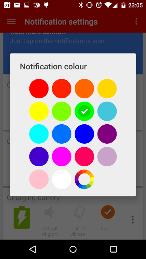 Not all phones support all colors. For example: Most HTC phones only support 3 colors and require "Rooting" and running the app in "direct mode" Some phones can only light up the notification while the screen is off. Some phones cannot have their notification light always on Some phones cannot have their notification blink and it will always be on Note that it will take over control of your notifications and you will therefore only get notifications for categories that the app allows.