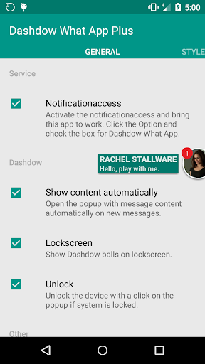 For devices with Android 4.3 or higher we use the notification access service which you have to activate. Devices with 4.0 or higher will have to enable the accessability service in system. Have fun with this application and give us a feedback, espacilly for errors and more possible features.