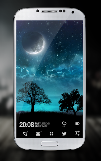 This live wallpaper features a relaxing night scene, with dreamy blue color tone, sparkling and shooting stars and tree silhouette. When you swipe to change home screens, the scene moves with parallax effect to simulate 3D space.